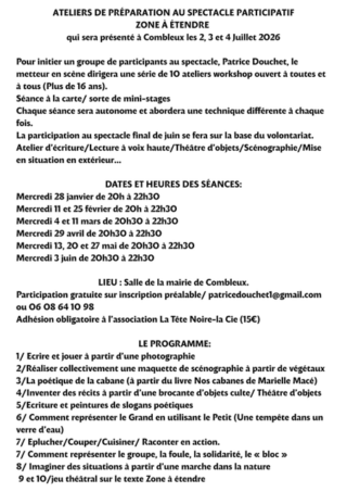 Artistes en herbe, à vos agendas ! 10 ateliers dirigés par le metteur en scène Patrice Douchet pour participer au spectacle final à Combleux